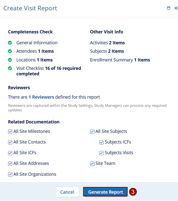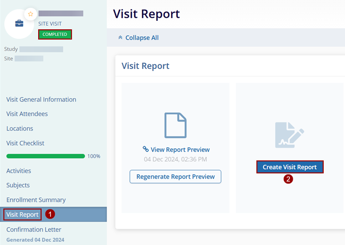 To generate the Site Visit Final Report, follow the steps below. Ensure that the visit status is completed.