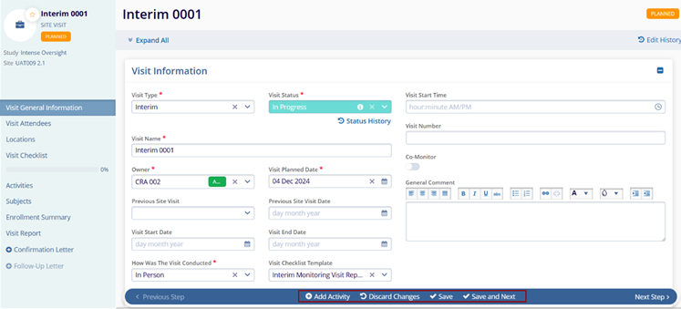 - Click on the Save and Next button to save the changes on the current activity and move on to the other activity.
