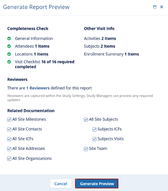 - On the Generate Report Preview window, click on the Generate Preview button.
