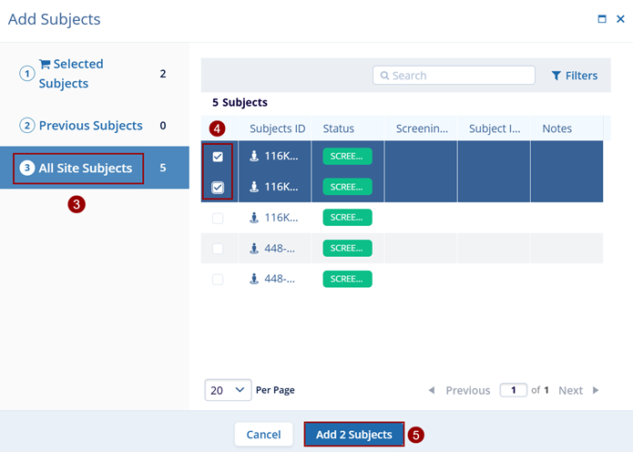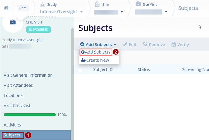 - Navigate to the Site Visit General Information screen by following the steps detailed in the Site Visit Navigation section and click on the Subjects link.