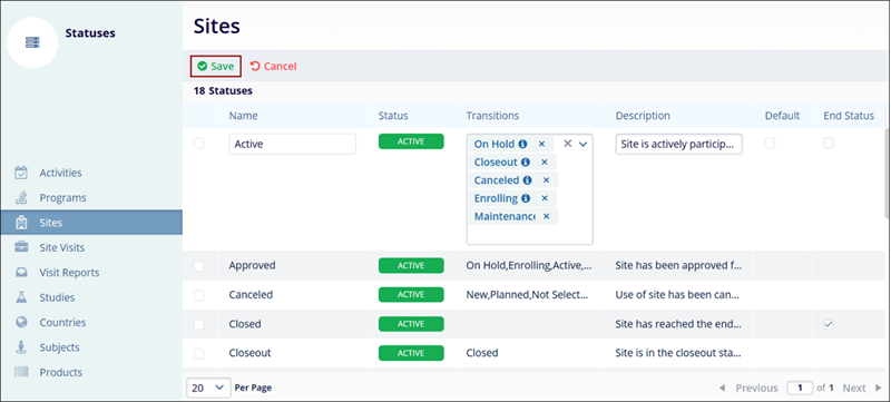 - Select the status that should be indicated as an End or Final status using the checkbox.