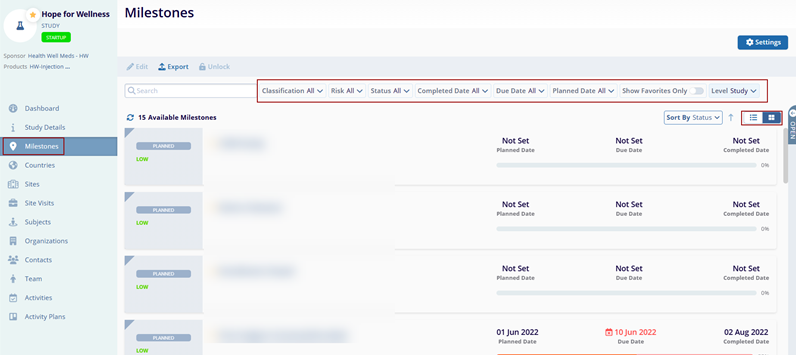 - To navigate a Studies Dashboard, click on the Studies link in the Navigation menu at the left side of the screen.