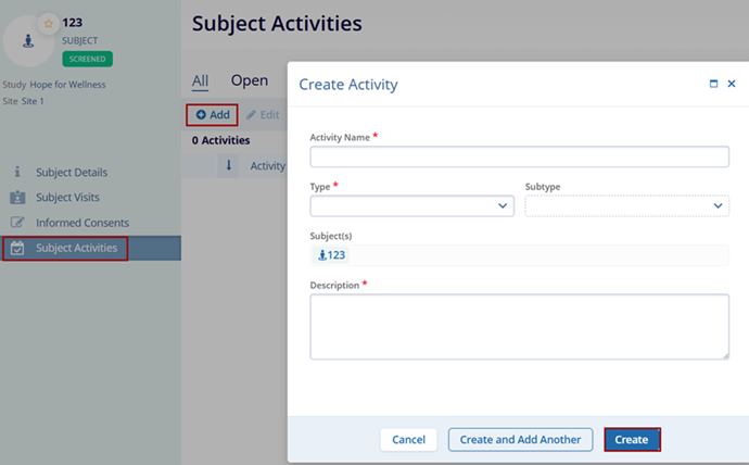 - Click on the Subject Activities link from the left-hand navigation pane.