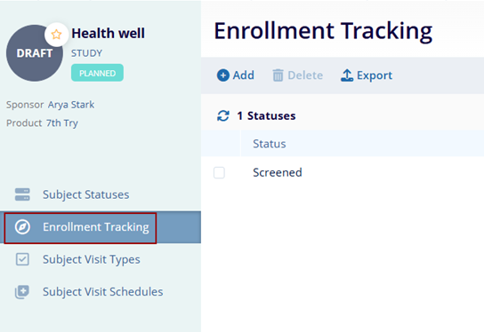 - Click on the Enrollment Tracking option and add, delete, and export the