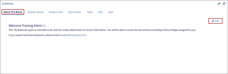 - Navigate to the Common dashboard, and click on the About this room tab.