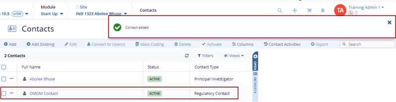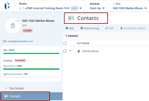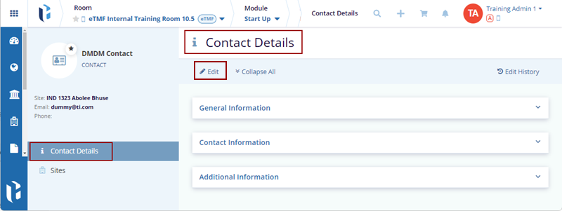 - Click on the name of the newly created contact the Contact Details page is displayed with the existing information.