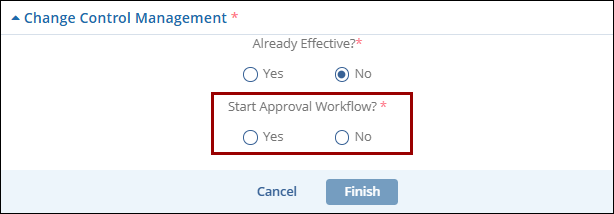 - If No, then select either Yes or No in the Start Approval Workflow*