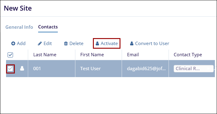 - To activate, the contact, click on the Activate button from