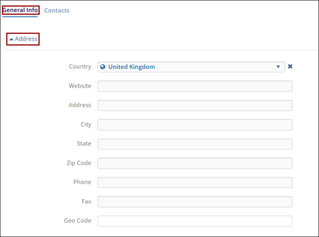 - Address: Add information to the following fields.