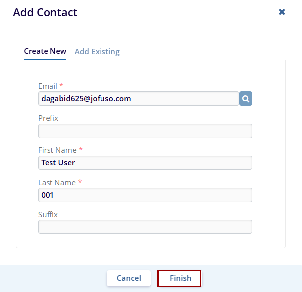 - To add existing contact, switch to the Add Existing tab.