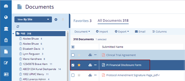 Click the Star icon next to the document checkbox to add it to Favorites—the grey star will turn yellow. Alternatively, use the three-dot menu to access the same option.