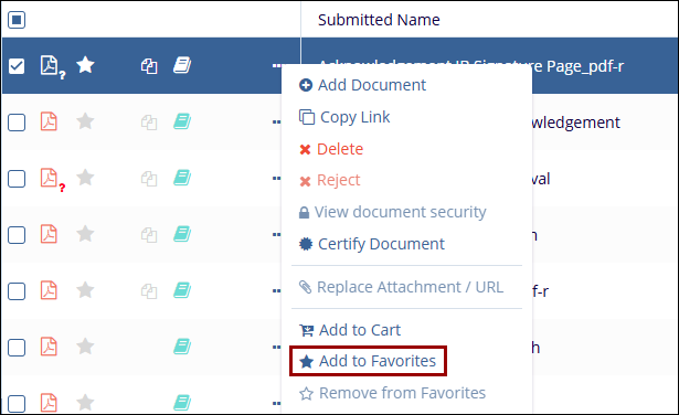 - Similarly, select Remove from Favorites. Option to remove the document from the favorites list.