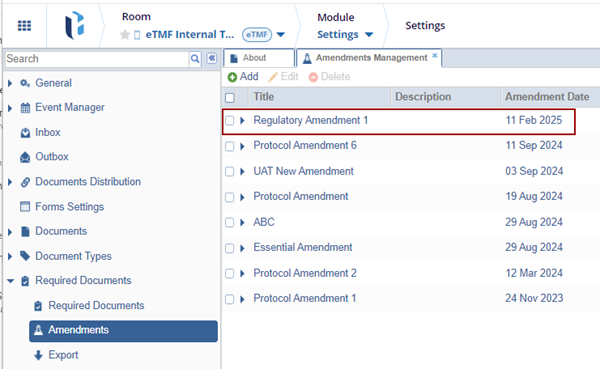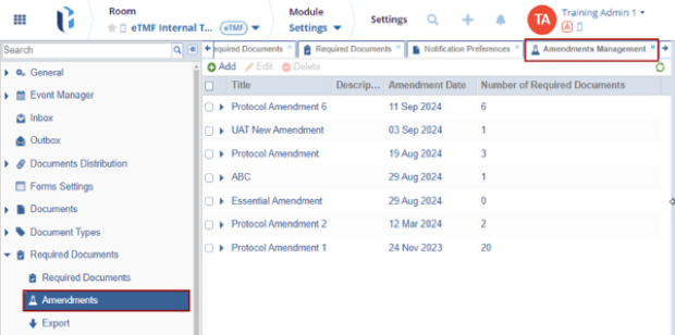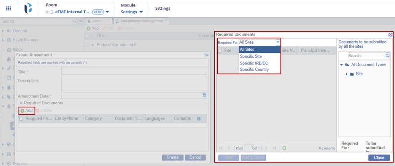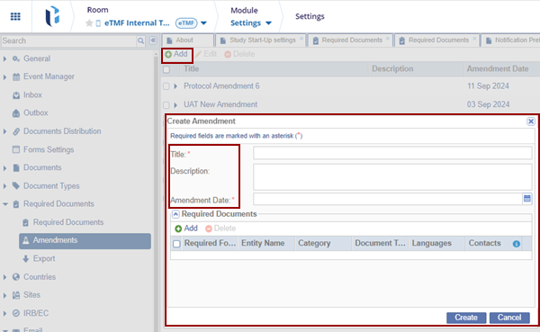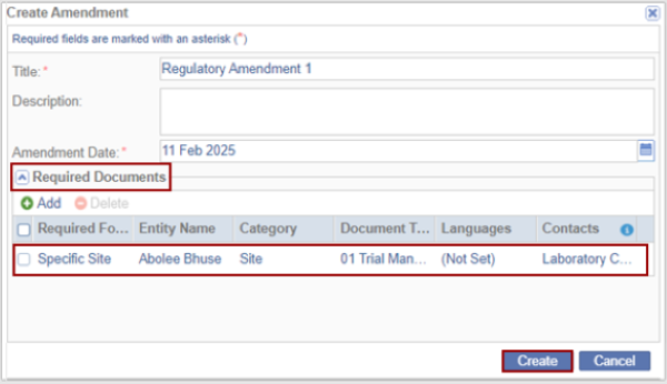- Click Add, within the Create Amendment window to add the equired Documents.