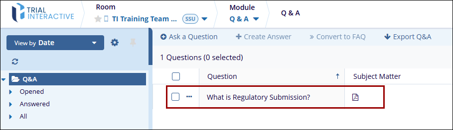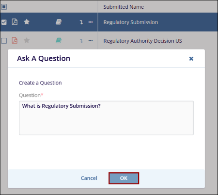 This option allows users to submit a document-specific question directly to the Q&A module of the room.