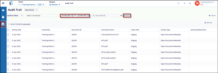 Refer to the Audit Trail from the eTMF Module for a more detailed description of these options.