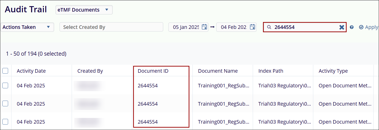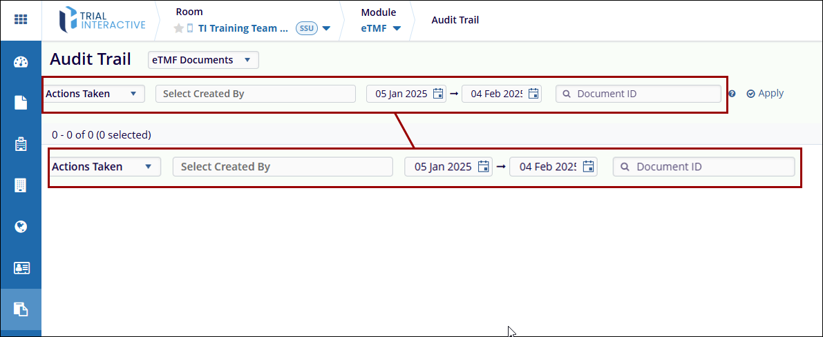 - Document ID Filter: The Document ID field allows users to retrieve audit