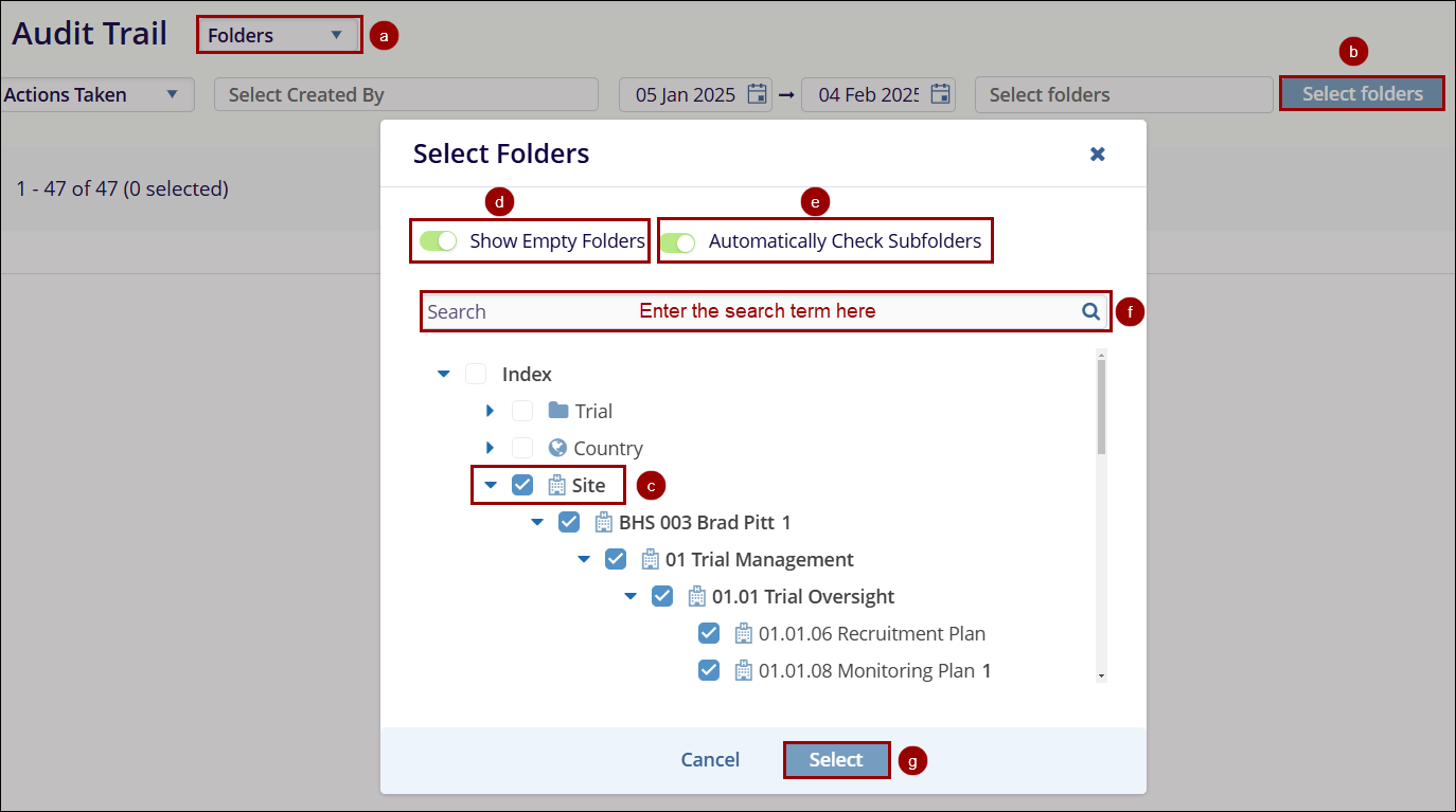folders and retrieve the audit trail for those specified folders.