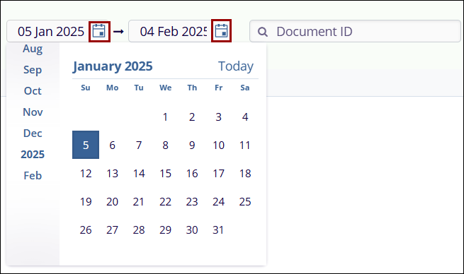 to search for a document. By default, the start date is set to the previous month,