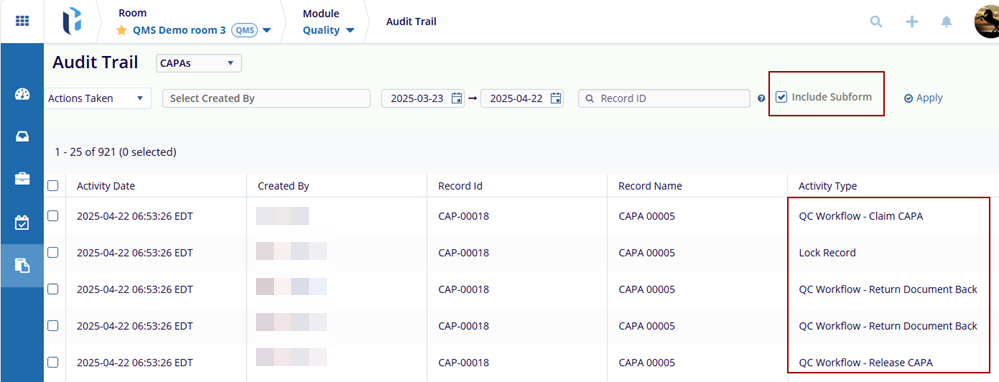 Example: QC Workflow - Claim CAPA, QC Workflow - Return Document Back, etc.