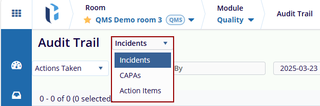 - Click the drop-down menu displayed next to the Audit Trail page Title.