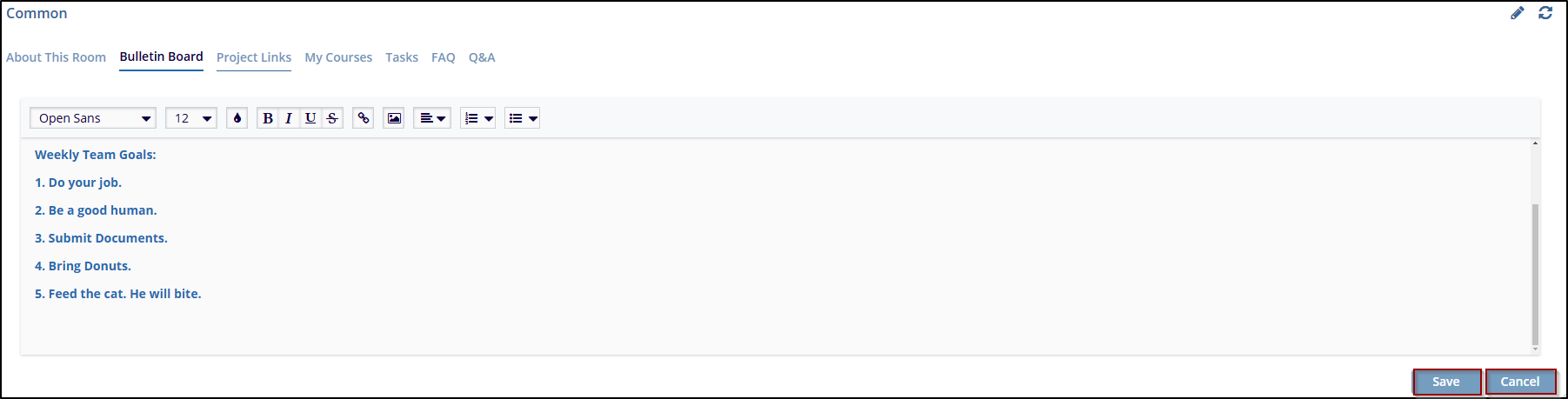 - Navigate to the Common dashboard, and click on the Bulletin Board tab.