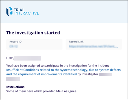 - After the Investigation is initiated, Sub-Investigators will receive an email