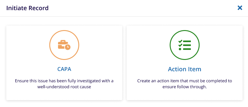 to create the CAPA and Action Item.