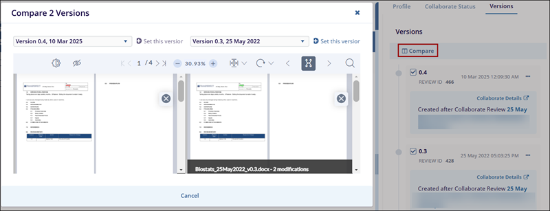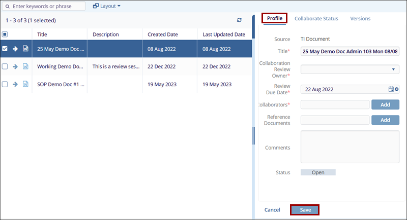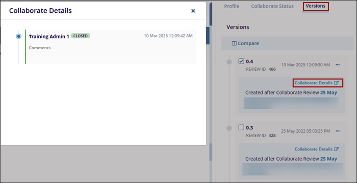 Collaborate Details tab to view the collaborate review details in a separate popup.