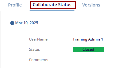 - Once the session is successfully closed, the Collaborate Status tab displays the review