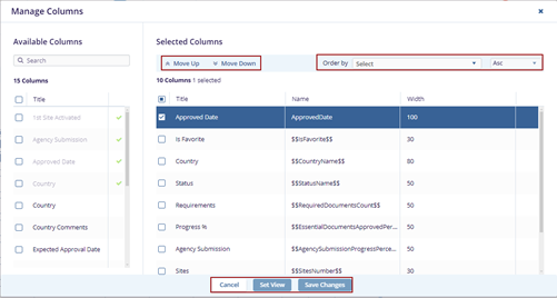 - Click an appropriate option from the following – Cancel, Set View, or Save Changes as required.