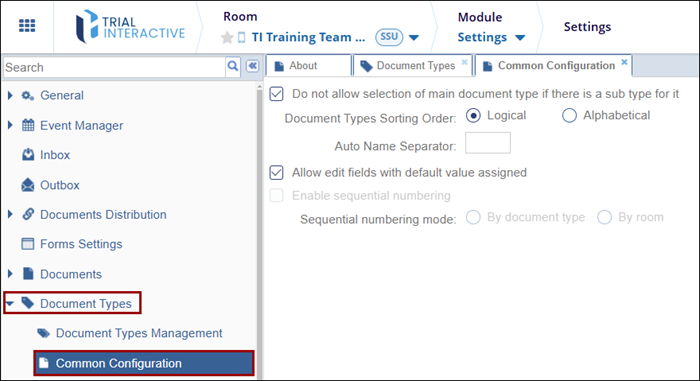 Do not allow selection of main document type if there is a sub type for it: Enable this setting by clicking on the checkbox. If this setting is enabled, the selection of the main document will be restricted if a sub-type is associated with it.