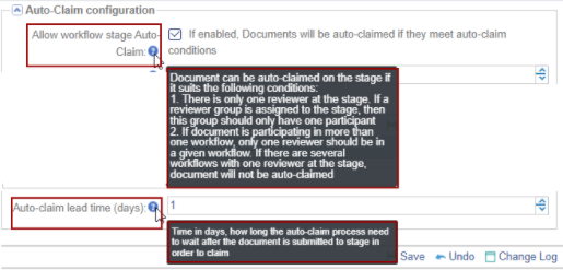 To enable the auto-claiming of a document, the Administrator will need to enable the configuration from this panel.