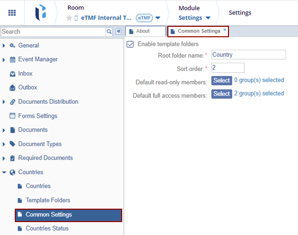 3. Change the Sort Order, the place in the room's index structure where the Country Management folder appears.