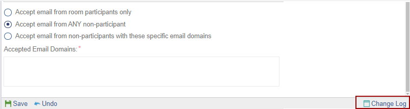 Accept email from ANY non-participant: When enabled, this option allows emails from any sender, regardless of their participation status in the room.