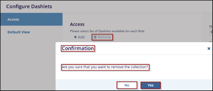 - Click the Yes button to confirm and remove the collection or click the No button to cancel the action and keep the collection.