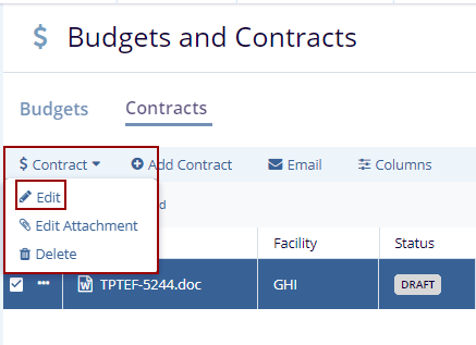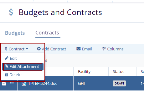 Follow the steps below to Edit Attachment the Budget and Contract: