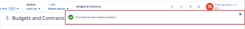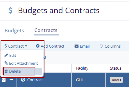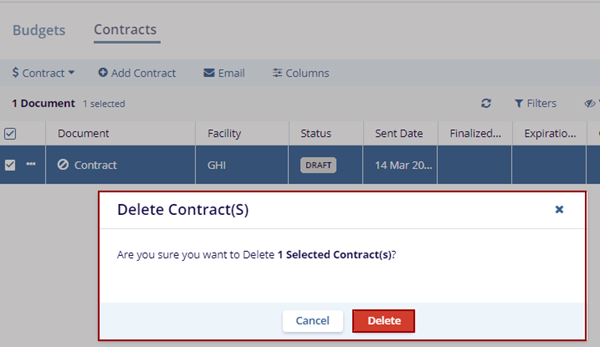 - Select the document and expand the Contract drop-down and click the Delete option.