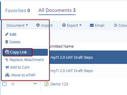 This option allows the user to copy the document link or copy the link along with its metadata.