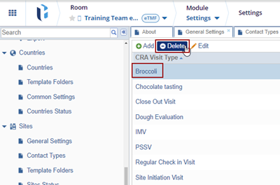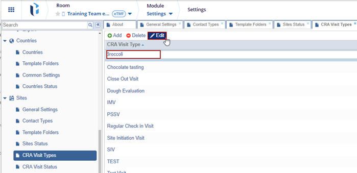 Follow the steps to Add, Edit and Delete the CRA Visit Type: