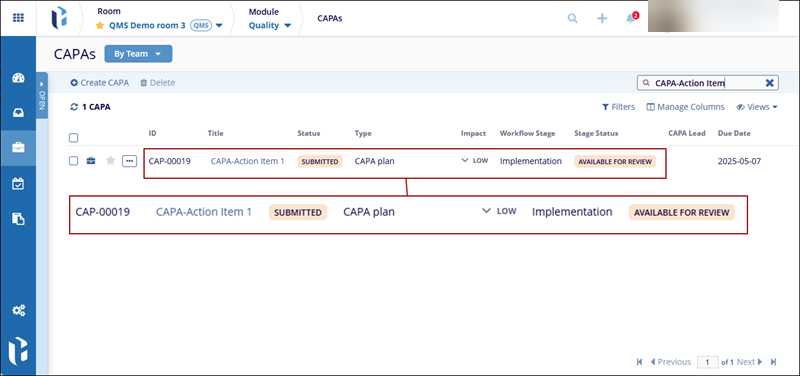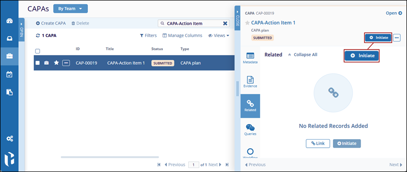 - Click on the CAPA title, navigate to the ‘Related’ tab in the quick view panel and