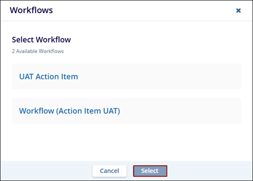 - If more than one workflow is identified based on the record types, users can choose from the available workflows list.