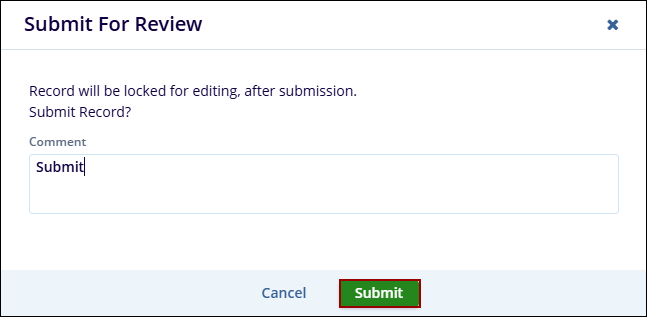 - On the Submit for Review popup, enter a comment and click on the Submit button.