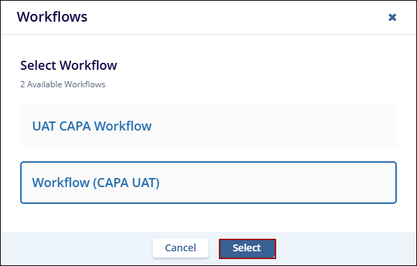 - Choose the appropriate workflow from the Workflows wizard and click on the