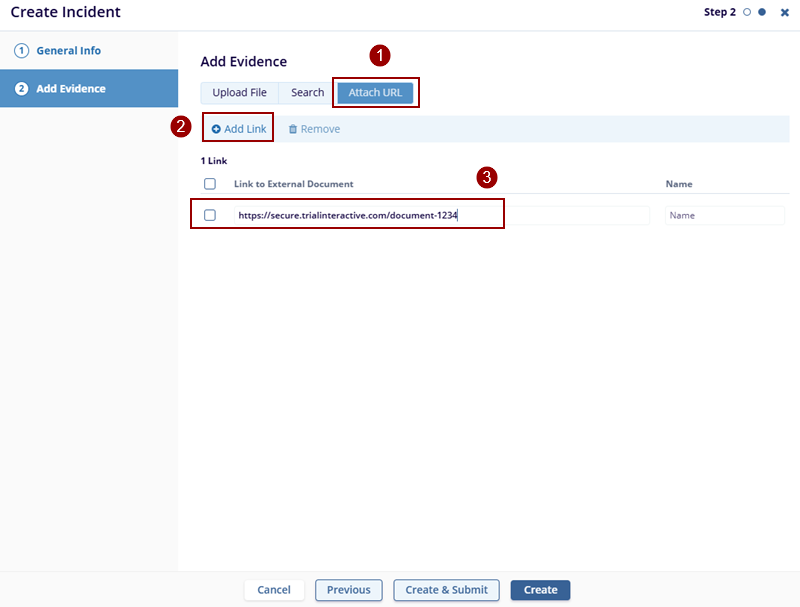 - The third option is to Add a URL to this Incident. Click the Attach URL tab,