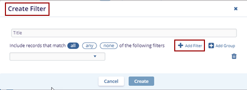 - Click the +Add Filter option. The empty field populates on the page.