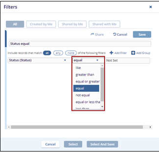other fields such as Equal and Not Set will be populated accordingly.