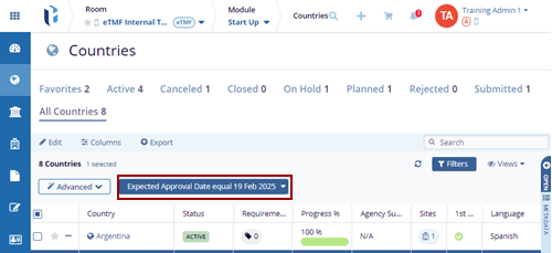 - Select – displays the countries added based on the created filter.