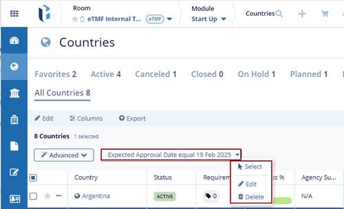 - Click on the filter dropdown to Select, Edit, or Delete the filter.