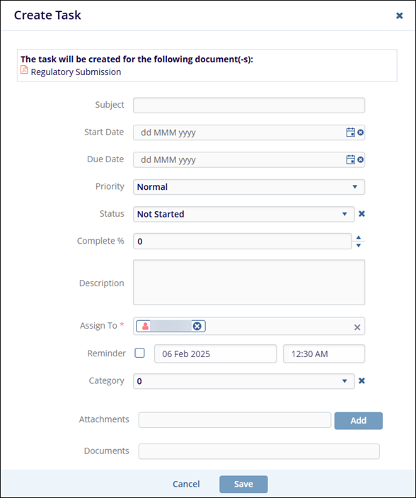 - On the Create Task form, fill in the necessary details and click on the Save button.
