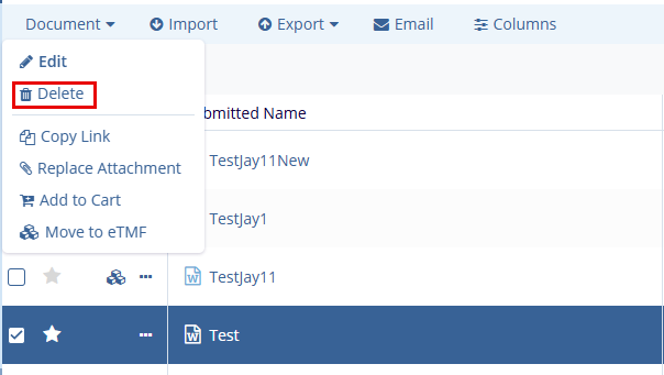 - Click the dropdown menu of the Document button OR click the three-dot menu next to the checkbox of the selected document.